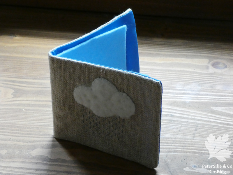 Gestickt habe ich auf naturfarbenem, groben Leinen – die Regentropfen sind jeweils über drei Fäden mit drei Fäden Zwischenraum gestickt. Die Wolke besteht aus weißem Filz auf den ich 1cm dickes Vlies aufgestickt habe. Das war ein sehr unaufwendiger Nadelbrief und darum schreibe ich noch ein bisschen über die Inspirationsquelle: Nadel und Faden – Das Handbuch der Stiche und Nadelarbeiten von Sarah Whittle. Die deutsche Ausgabe ist 2013 im Haupt-Verlag erschienen und ich besitze es, nun, weil es so eine Art Nachschlagwerk in deutscher Sprache ist, es mir von Sabine empfohlen wurde bzw. ich in dem ihren schmökern durfte und wir es gerne einmal vorstellen möchten.