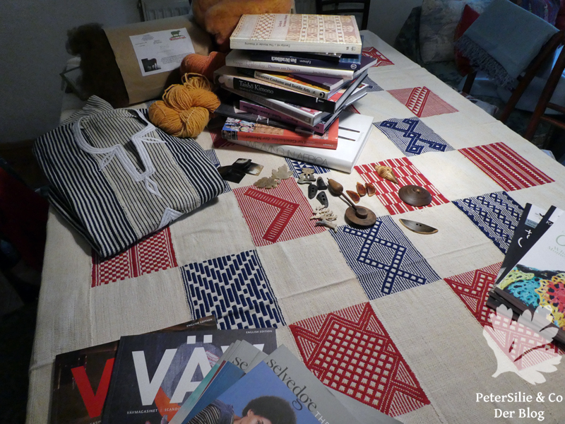 Der Sonntag gehörte ganz und gar dem Webermarkt in Haslach. Für mich und Sabine als Gastgeberinnen war es schön die Freude und Begeisterung zu erleben mit der all unsere Gäste die bunte Vielfalt und wunderbar gelassene Atmosphäre genossen. Ich war schon sehr oft in Haslach, Sabine ein paarmal (und wir haben ein entsprechend großes Budget eingeplant), aber für alle anderen war es ein völlig neues Erlebnis. Es gab viele wunderschöne Arbeiten zu bewundern, liebenswerte Gespräche mit den Ausstellern ein gemütliches Mittagessen, interessante Informationen und Zufallsbegegnungen mit anderen Bekannten. Irgendwann waren wir natürlich erschöpft und mussten uns eingestehen: Mehr geht einfach nicht mehr. Sabine hätte den Tag gern mit einem Bauernkrapfen abgeschlossen, nur waren wir dafür zu spät dran. Ich konnte gerade noch zwei Stück Kuchen ergattern, die letzten… Ich habe wieder Lust auf das Spinnen und Weben bekommen und mich mit vielen tollen Büchern, Zeitschriften und Materialien eingedeckt.
