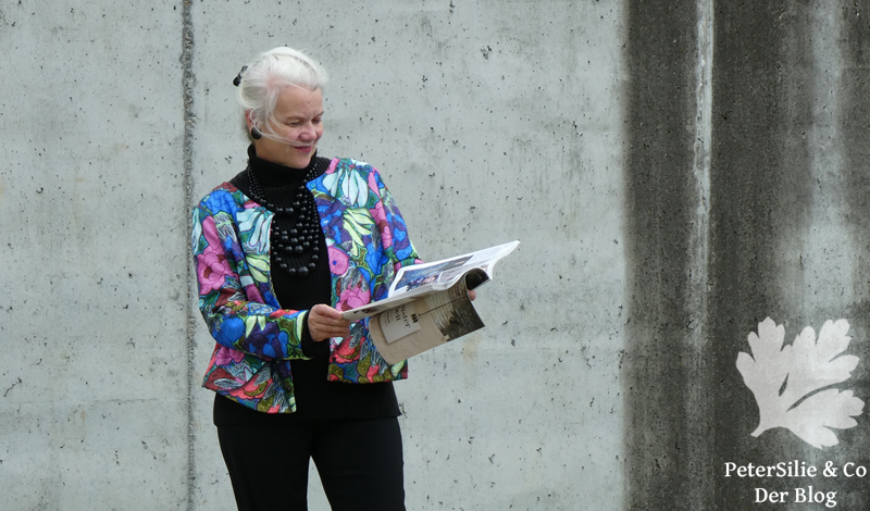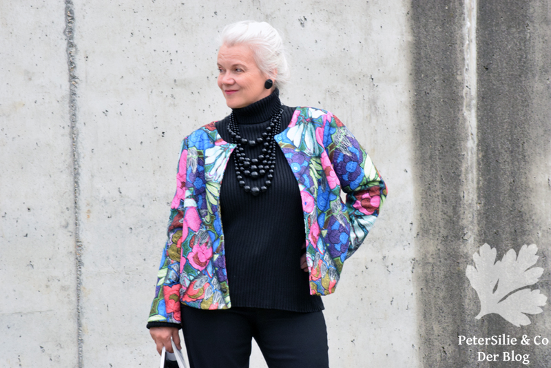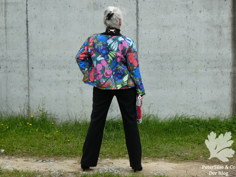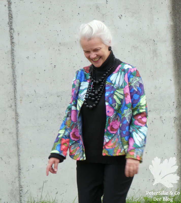 1. Liebe Silvia, die Jacke steht dir ausgezeichnet. Ich finde, der extravagante Stoff passt perfekt zu dem Schnitt!