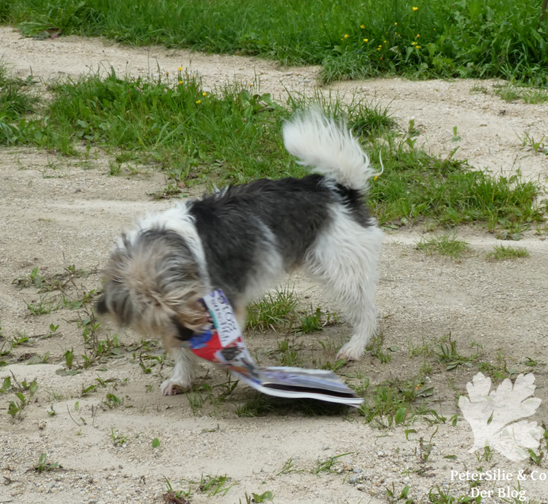 So, und da mein Modell so sehr nach Zirkus aussieht haben Bruno und ich uns in Dressur versucht. Mit nur teilweisen Erfolg wie man sieht: die Zeitung war zu glatt und schwer. Aber er war sehr engagiert und hat nicht gleich aufgegeben.