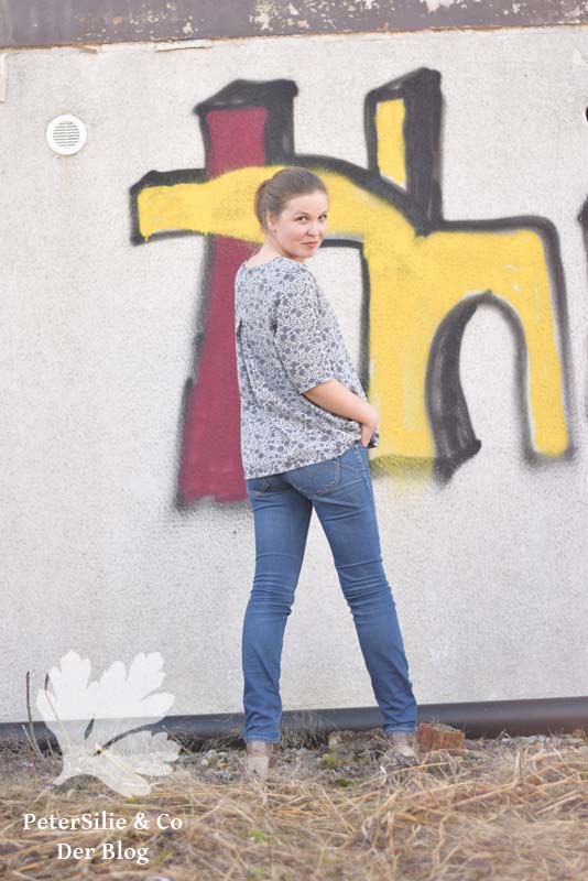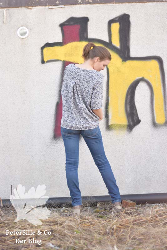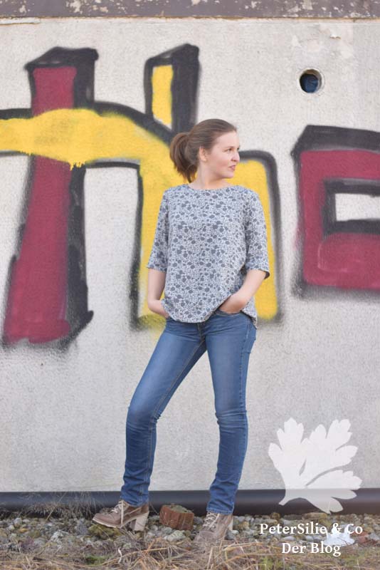 Einziges Mäkeln – abgesehen davon, dass der Ausschnitt mal verrutscht – ist der Umstand, dass die Bluse (für mich) nicht wirklich wintertauglich ist. Klar könnte man unter der Bluse ein (echtes) T-Shirt tragen, allerdings bleibt immer noch das Problem mit den kurzen Ärmeln. Und genau diese Ärmel (und der simple Ausschnitt) macht dieses Projekt so schnell.