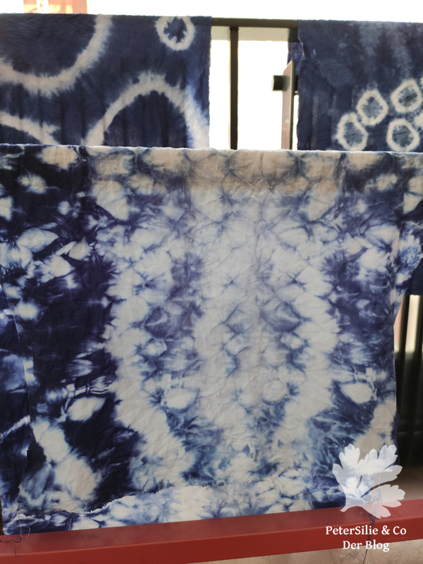 Achja, ich wurde noch aufgeklärt: Batik ist nicht Shibori. Beim Batik deckt man den Stoff mit Wachs ab, während man beim Shibori abbindet und dann färbt.