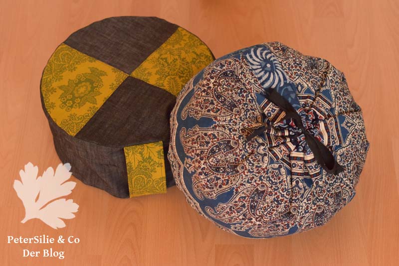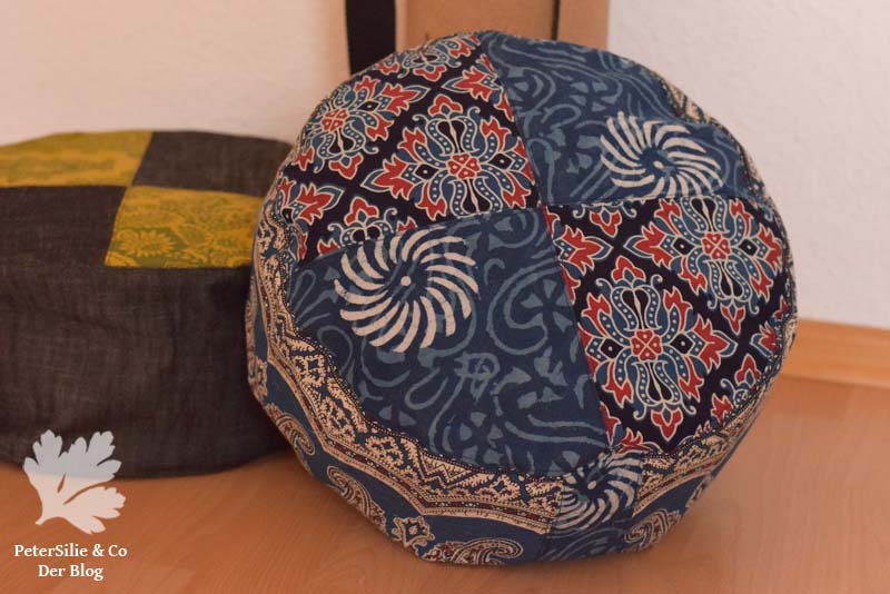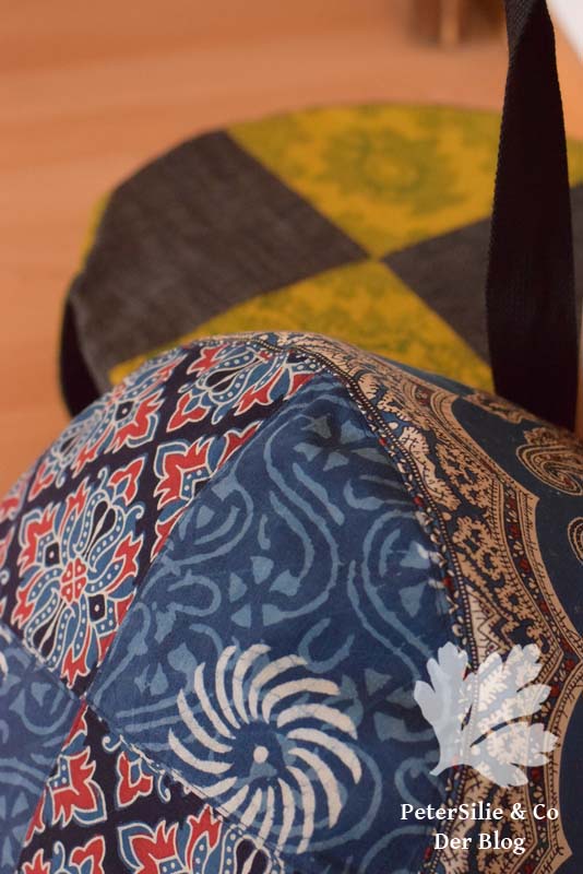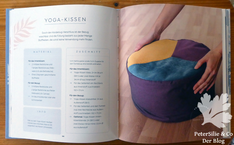 Dazu gibt es pro Kapitel vier sehr ansprechende DIY Projekte mit Anleitung (Panty, Küchenhelfer, Taschen, T-Shirt, Waschmittel, …) Mein Versuch eine Panty zu nähen ist zwar gescheitert (zu ungeduldig gewesen), aber Anna hat dafür diese fröhlichen Yogakissen genäht – aus Resten von diversen Projekten (Chalk Bag, Mäppchen, Kimono und Blaudruckbluse). Nur die richtige Füllung fehlt noch.