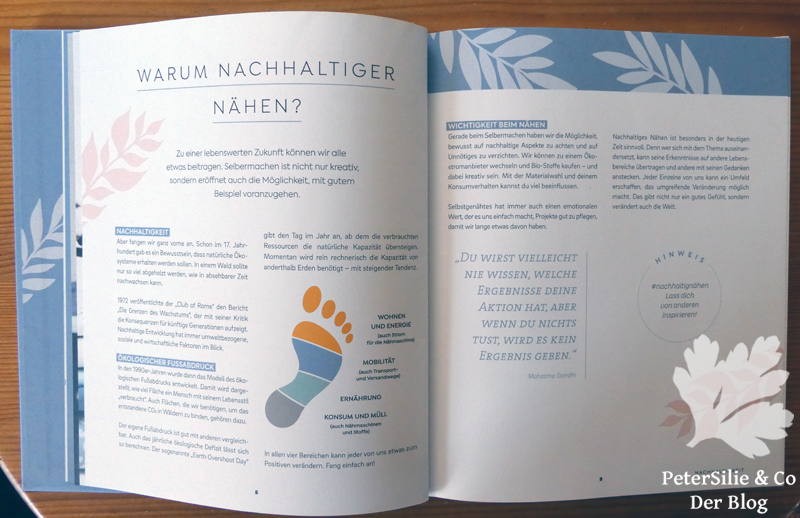 Fazit: Ein Buch, dass nicht nur schön ist, sondern auch mit vielen Infos aufwartet. Hinterfragt man unseren Ressourcenverschleiß und den aufwendigen Lebensstil landet man, wie Petra Wünsche, schnell bei den Fragen: Brauchen wir tatsächlich soviel an Stoff, Kleidung, Schnitten, Zubehör, Abwechslung … Muss alles so schnell gehen? Ginge es nicht genussreicher, langsamer und schöner? Was mir außerdem gefällt ist, dass die Autorin Mut macht jetzt sofort neue Wege zu versuchen!