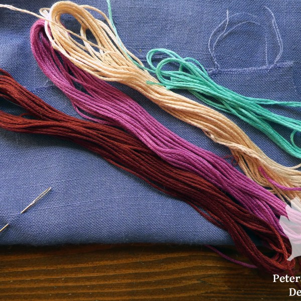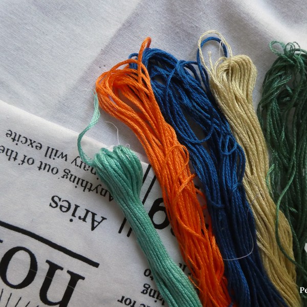 Leaf & Needle präsentiert eine Farbpalette, die bestmöglich mit vorhandenen Materialien umgesetzt werden soll. Explizit erwähnt wird, dass man verwenden soll was man hat, also nicht extra einkaufen und wenn ein Farbton abweichen sollte, geht die Welt nicht unter. Wenn möglich sollen alle Farben eingesetzt werden, Schwarz und Weiß sind erlaubt, sollten aber keine Hauptfarbe sein. Als Untergrund nimmt man was man will. Es geht übrigens nicht nur um Stickerei, alle anderen Handarbeitstechniken oder Kombinationen davon sind ebenfalls willkommen.