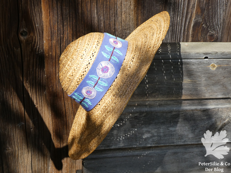 Diesmal versuchte ich mich an einer Bordüre aus einem Handarbeitsbuch aus dem Jahr 1975. Da es einfach schön ist, mit seinen Stickarbeiten den Alltag zu verbringen, entschied ich mich, einen Strohhut damit zu schmücken. Dazu habe ich mehrer Stoffstückchen zusammengenäht – es sind die Reste einer Bluse -, um ein schönes Hutband zu erhalten. Kopfbedeckungen haben bei mir immer Saison. Ich brauche das ganze Jahr etwas auf dem Kopf: Haube, Hut, Kappe, Tuch oder mindestens ein Stirnband. Der Strohhut ist entzückend geworden. Die Farbpalette und das Stroh ergänzen und steigern sich optimal. Was mich darauf gebracht hat, mich wieder einmal intensiver mit der Hutmacherei zu beschäftigen …