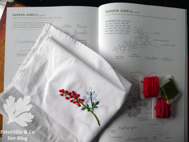 Also zeige ich euch meine Naturstudien nach dem Buch „Embroidered Flowers“ von Kazuko Aoki. Der Name dürfte den geneigten Lesern bekannt vorkommen, denn Silvia hat schon einmal einen Nadelbrief nach dem Buch „The Emboidered Garden“ gezeigt und ich habe im Januar einen Nadelbrief mit Motiven aus „Embroidered Kitchen Garden“ gestickt.