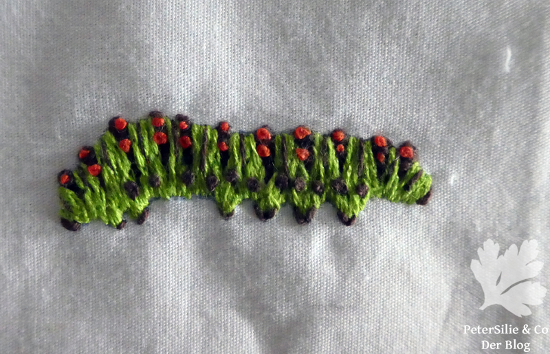 Ich hatte mir zwar auch Garn besorgt um eines der größeren Stickmotive zu sticken, aber ich hatte viel mehr Freude an den kleinen Motiven. Darum gibt es auch so viele Ameisen. Gelegentlich habe ich eine Pflanze nicht erkannt – ich bin jetzt auch nicht so der große Botaniker -, aber dank der Beschriftungen ist es ein leichtes die Planzen online zu suchen und festzustellen wie diese in Wirklichkeit aussehen.
