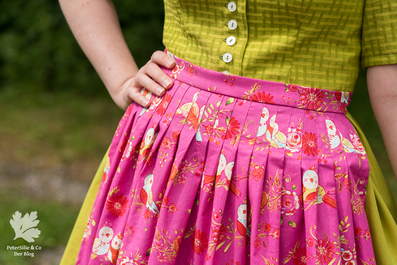 Und das Schöne ist: Der Stoff für die Schürze kann eigentlich alles sein was gefällt und dazupasst. Wichtig ist, dass der Schürzenstoff nicht schwerer ist als der Rockstoff. Die Möglichkeiten sind von der klassischen Baumwollschürze bis zu Spitze oder Chiffon ganz weit offen.