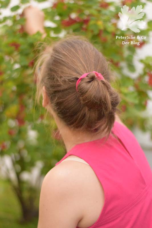 Vernäht habe ich 2m pinken Handlooms von Karlotta Pink. Der Stoff ist nicht durchsichtig – bei meiner Leinenversion bin ich mir da nicht so sicher – und fällt gut. Das einzige doof ist: Das Häckchen hinten, das den Schlitz eigentlich verschließen sollte, geht ziemlich sofort wieder auf. Ist dem Fotografen zwar aufgefallen, aber nicht als Fehler. Ich werde da wohl nochmal dran müssen: Ev. doch eine Schlaufe häkeln?!