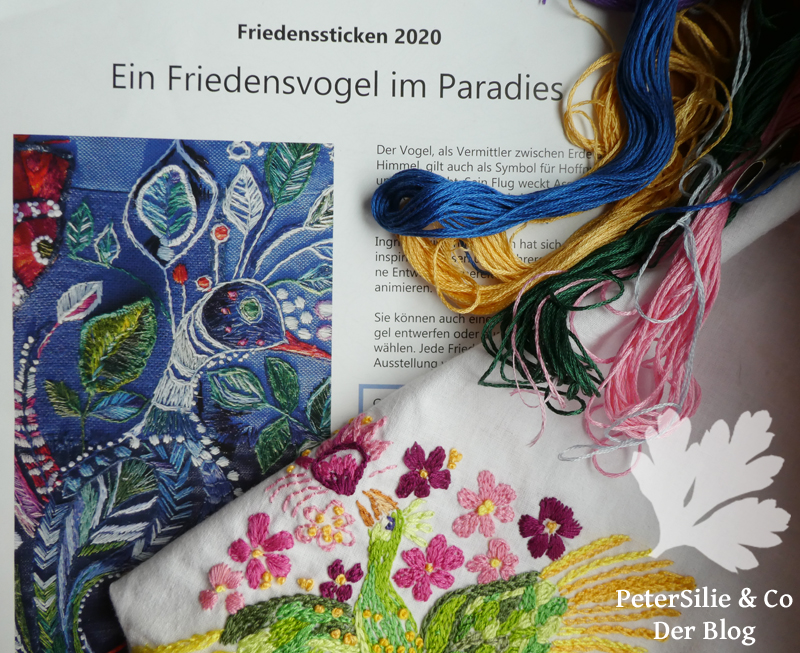 Die Ausstellung der fertigen, eingesandten Friedensstickereien findet vom 25. Oktober- 15. November 2020 im Garnlager Zürcher Stalder AG Gewerbestraße 9, CH-3421 Lyssach statt. Sabine und ich haben letztes Jahr beide teilgenommen und die Vernissage und Ausstellung „Friedenshäuser“ besucht. Mit dem Herumreisen ist es momenten nicht so leicht, aber für alle, die näher dran sind: Es war eine sehr schöne Präsentation und auch sehr inspirierend. Alleine die Vielfalt an Möglichkeiten ein Thema mit Stickerei umzusetzen. Ich bin schon sehr gespannt, welche Vögel es heuer zu sehen gibt.