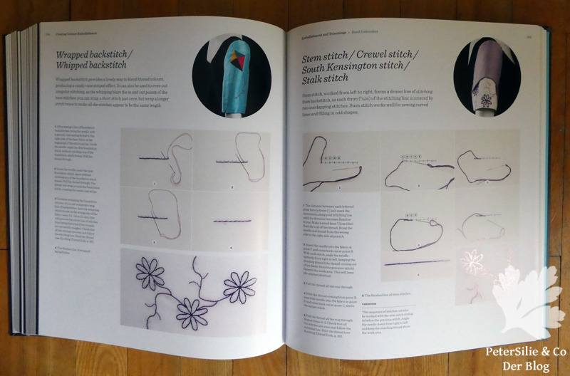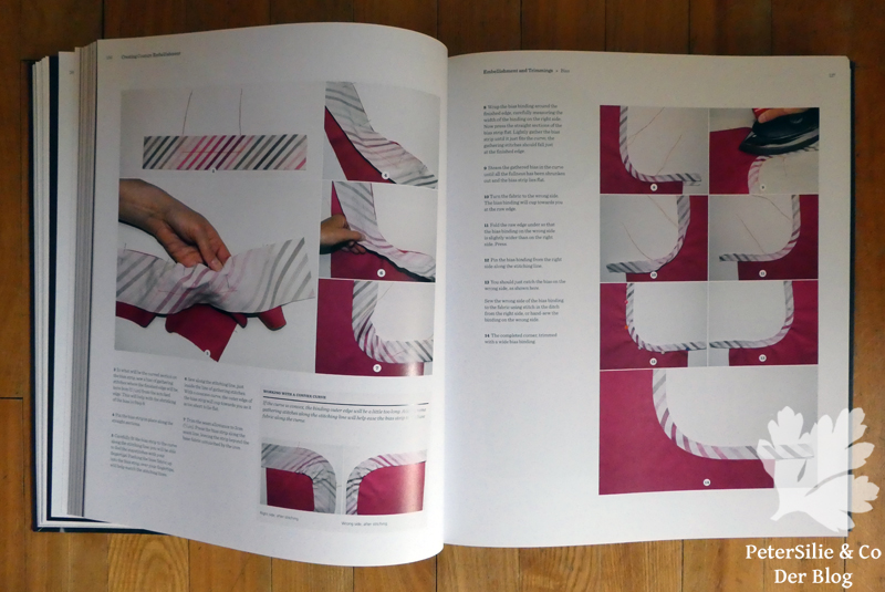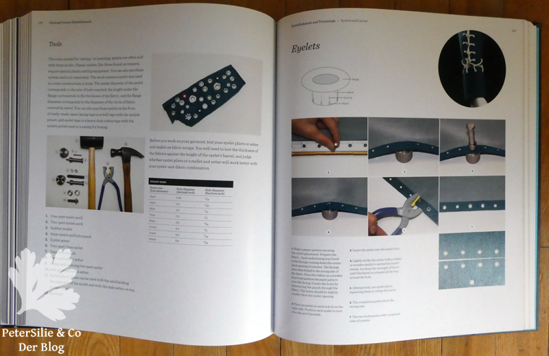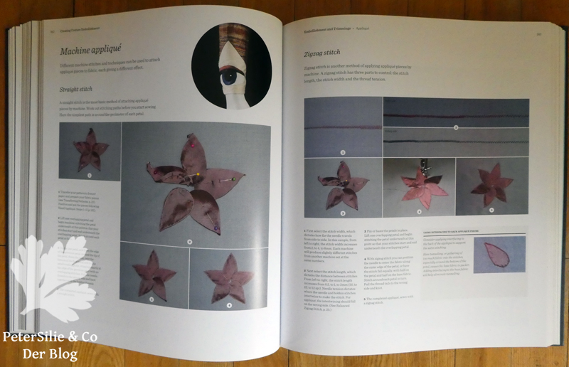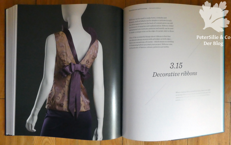 Soviele Ideen stecken in diesem Buch. Applizieren, Falten, dekorative Bänder, Blumen, Quilten, Arbeiten mit Spitze, Perlen und Federn.Über 140 Möglichkeiten der Aufwertung von Kleidungsstücken, sagenhaft. In 22 großen Kapiteln, jeweils eingeleitet mit einem exquisieten, genähten Couture-Top, herrlich fotografiert auf einer Puppe. Zu den verschiedenen Varianten der vorgestellten Technik gibt es je ein ausgeführtes Beispiel an einem Ärmel zu sehen. Darum mein Versuch an einem Ärmel…Ein beeindruckendes Buch mit qualitätvollen, technischen Schritt für Schritt-Erklärungen in Text und Bild. 400 Seiten randvoll mit Anregungen. Immer wieder denkt man, wenn man im Buch blättert: „Das muss ich ausprobieren“ oder „Ach, wie schön…“