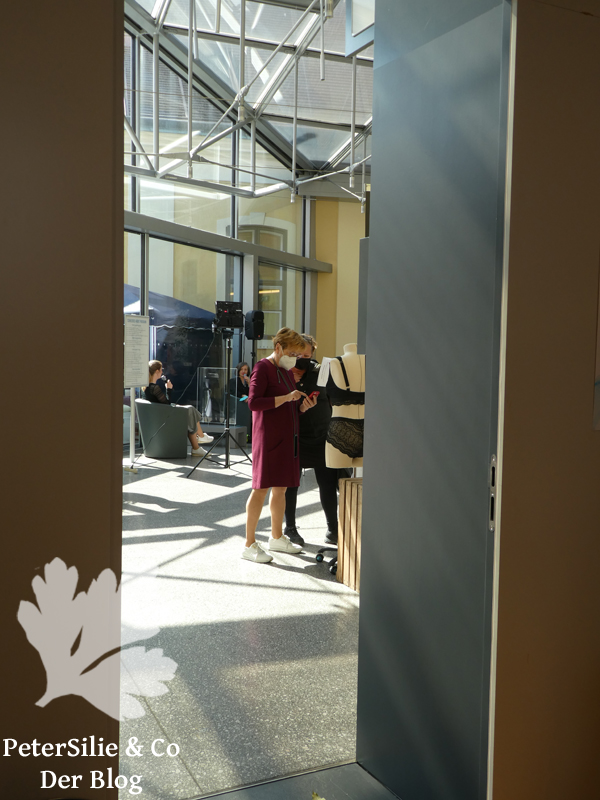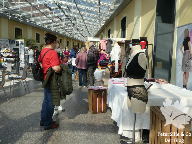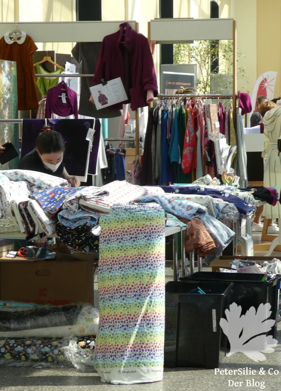 Als Rahmenprogramm gab es Vorträge oder Miniworkshops in einem angrenzenden Raum z.B. Stricksoffe verarbeiten (Veronika Persche), Praxistipp Bügeln (Yvonne Coutinho), Sichtbarer sein mit der perfekten Kleiderwahl (Martina Reuter), Sexy und bequeme Dessous nähen (We are Dessousmakers), Upcycling und anderes…Dazwischen gab es Interviews und Gespräche direkt im Ausstellungsbereich. Da konnte man sich bequem hinsetzen und zuhören oder nur stehen und wieder weitergehen. Schön war jedenfalls die Freude und Begeisterung der Beteiligten, mit der sie über ihre Arbeit oder Ideen sprachen.