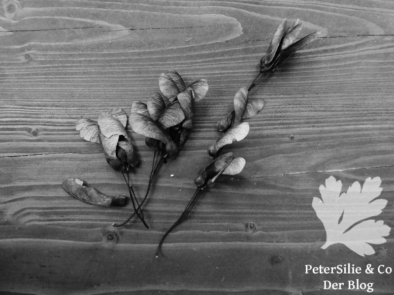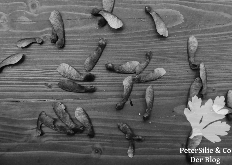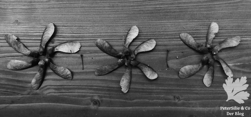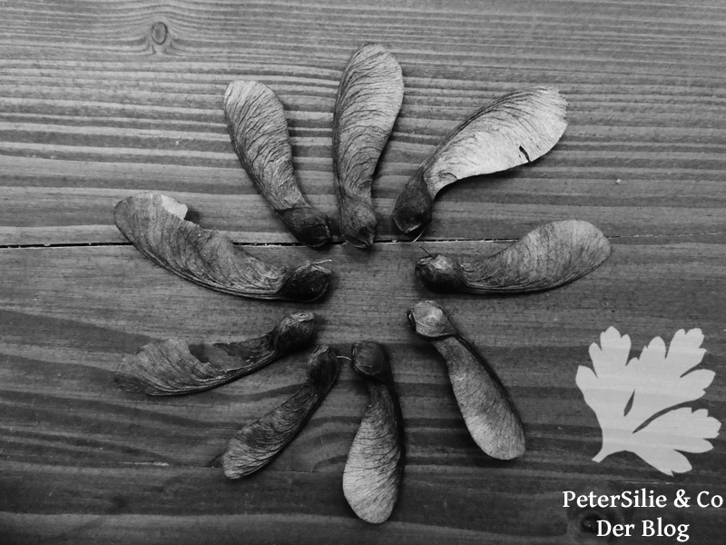 Bei einem Spaziergang habe ich Ahornsamen mitgenommen. Am Boden liegen sie oft einzeln verstreut, wie auf meinem zweiten Bild. Daraus könnte man aber einen Kreis formen, ein Sinnbild für eine Sonne oder eine Blüte. Aneinandergefügt könnte man aus dem einzelnen Ornament eine Bordüre bilden. Ich glaube, die Freude, die wir an solchen geordneten Anordnungen haben ist einfach Teil unseres Menschseins. Jedes Kind gestaltet solche Ornamente mit Blättern, Steinen, Samen oder Blüten.