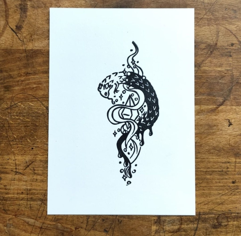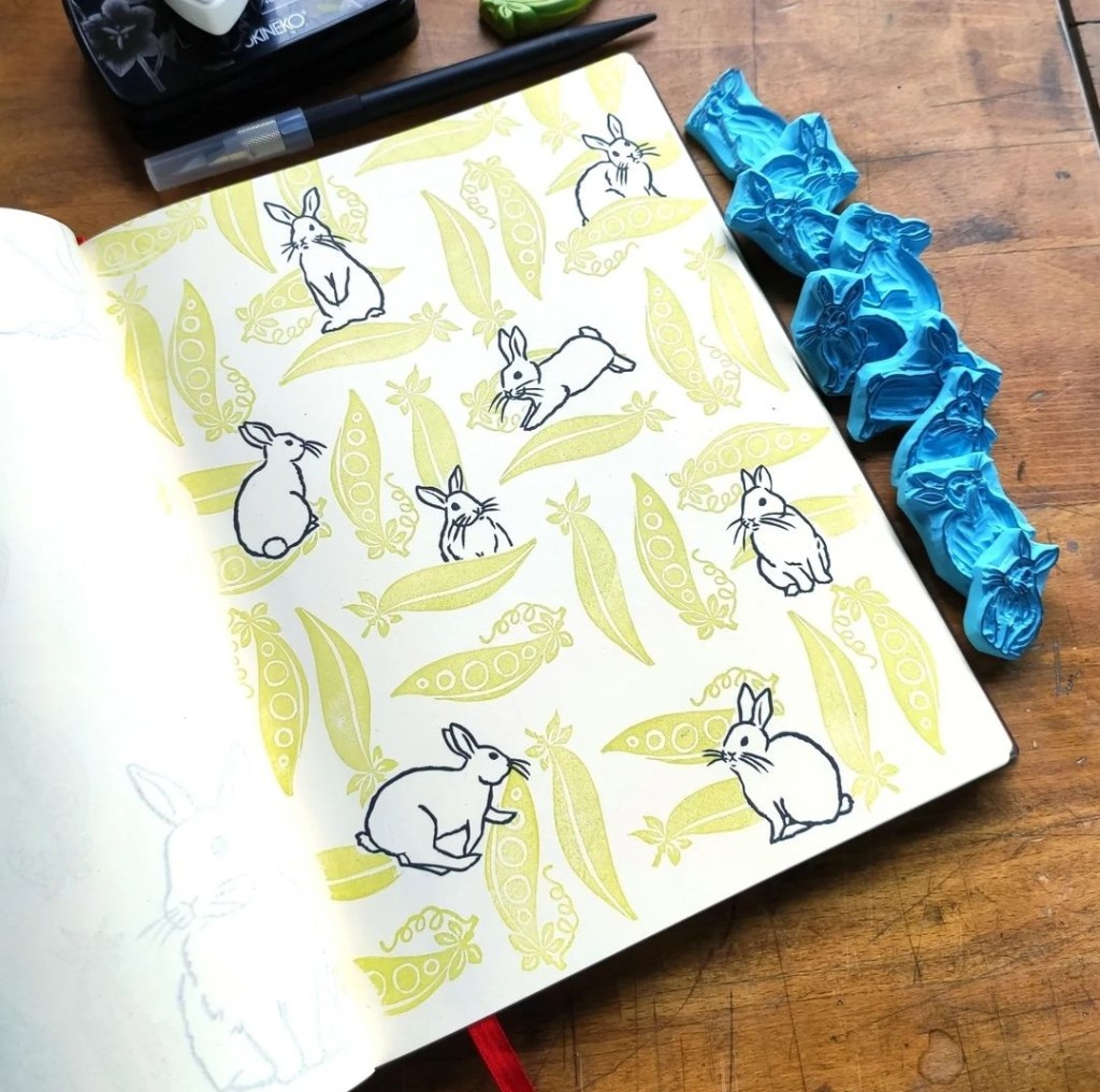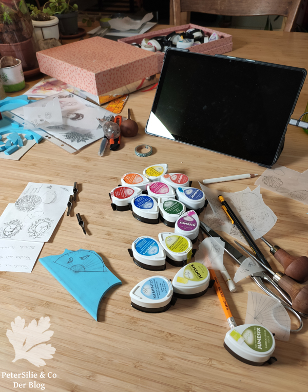 Bezüglich zeichnen und entwerfen. Viel rumkritzeln, nicht gross nachdenken und einen Stempel schneiden. Es ist oft sehr spannend wie doch anders der fertige Stempel im Vergleich zur Skizze wirkt.