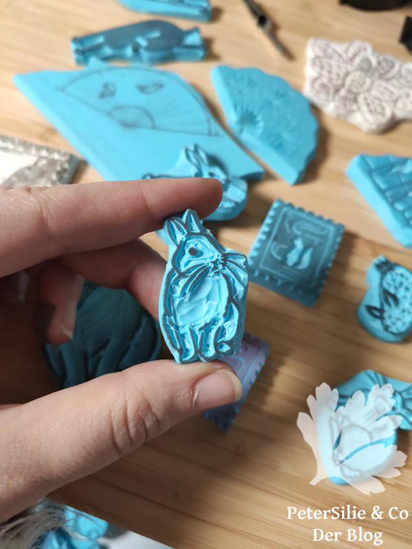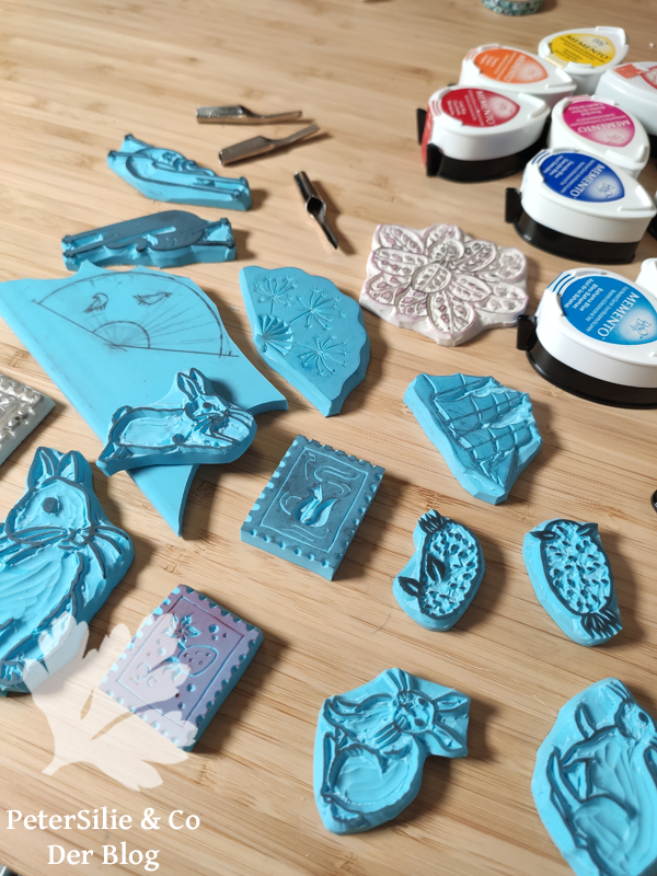 Und wenn gar nichts davon zuhaus rumfliegt, ein paar erste Stempel mit einfachen Formen lassen sich auch mit einem Teppichmesser schneiden.