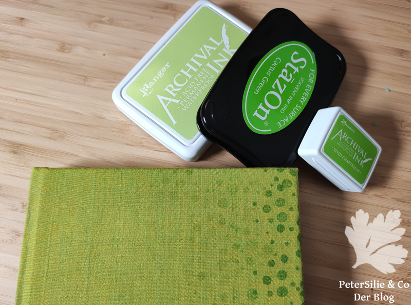 Rangers Archival Ink. Es gibt 28 Farben und Refiller (nur Farben mit Refiller kaufen, ansonsten sammelt man langfristig leergestempelte Stempelkissen), die Farben sind nicht denkend. Die Farben sind wie es der Name schon sagt lichtecht, wasserfest und säurefrei und können einfach durch Bügeln auf Stoff fixiert werden.