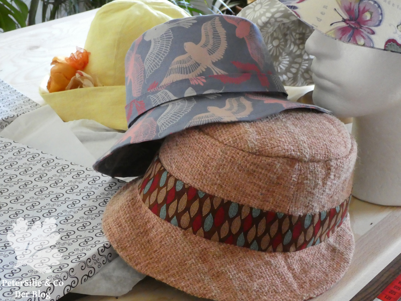 1. Als Verstärkung diente Vlies (wenn ich es gerade habe nehme ich aufbügelbare Webware). Den Hanf /Jutehut kann man vermutlich nicht waschen. Die anderen beiden vielleicht, jetzt kommt es darauf an: Sind alle Stoffe vorgewaschen? Kann man die Garnierung abnehmen oder mitwaschen…Man kann ganz sicher so einen Hut fix als waschbaren Hut planen, war bei mir aber nicht der Fall. Liebe Grüße, Silvia