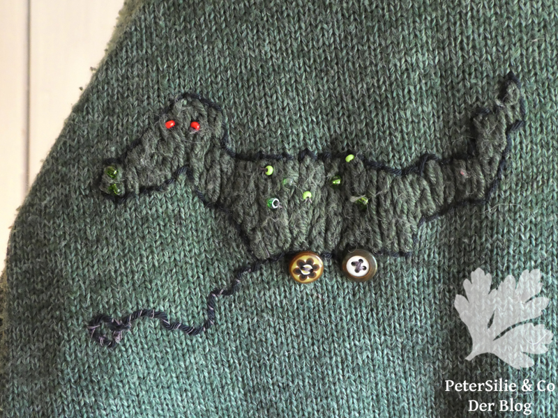 Liebe Silvia, da zeigst Du uns aber viele gelungene Beispiele für gestopfte und reparierte Sachen, ich bin sehr beeindruckt – besonders der Drachenpullover, den Dein Mann nun stolz trägt.