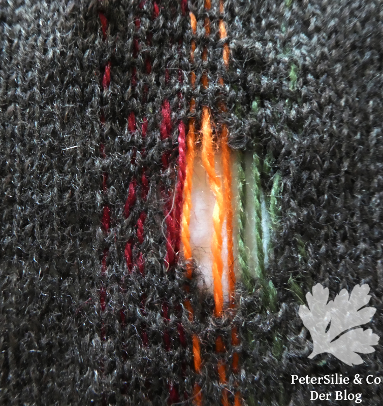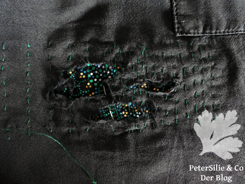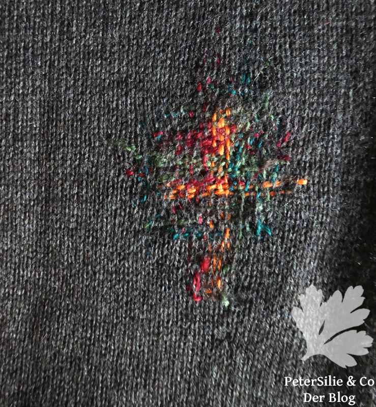 Ich bin beeindruckt ob der Kreativität, mit der du diese Reparaturen zu einem ganz besonderen Kleidungsstück verwandelt hast. Meine Stopfereien sind da eher zurückhaltend und straight, ich zeige sie dennoch, und zwar hier: