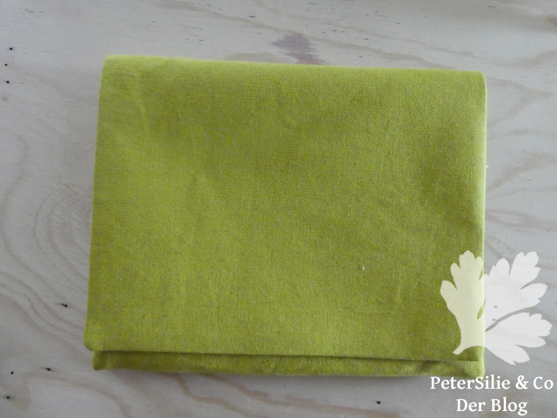 Es fand sich davon nur ein kleines Stück, gerade groß genug für die Klappe. Ich bin mit meinem kleinen Stoffrest ein bißchen herumgewandert um mögliche Partner in Gelbtönen zu finden, da begegnete mir doch tatsächlich der größere Rest. Allerdings war er bestickt, genaugenommen war es der Anfang einer nicht ganz überzeugenden Stickerei. Erfreulicherweise war es nur nötig einen kleinen Teil aufzutrennen.