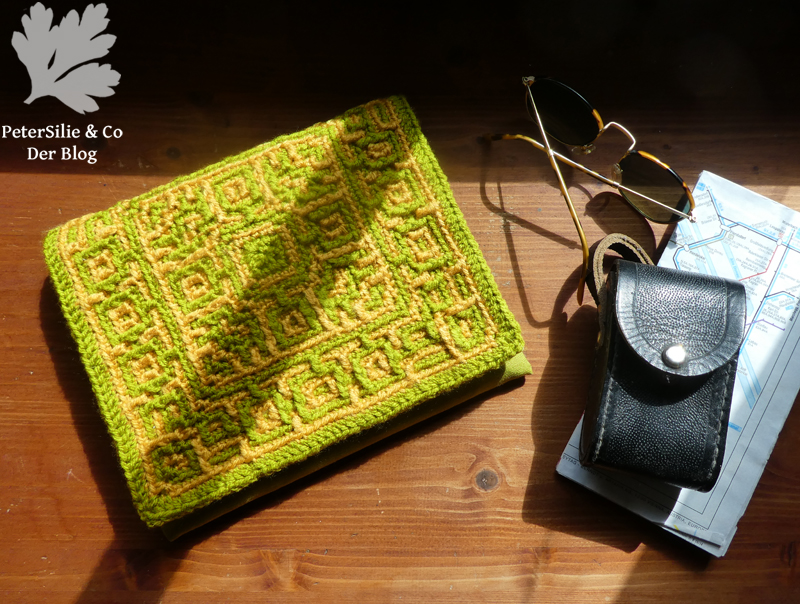 Fazit: Nachdem ich mir einmal klar darüber war, wie ich das alles zusammenbaue und besonders wie und wann ich das Häkelmotiv festnähen würde, kam ich gut voran. Und die Tasche ist tatsächlich so geworden, wie ich sie mir vorgestellt habe. Zuletzt erhielt sie auf Sabines Wunsch einen Druckknopf (Kamsnap) und eine Kordel zum Umhängen. Besitzt man ein größeres Stoffstück, kann man Tasche samt Klappe natürlich in einem Stück arbeiten.