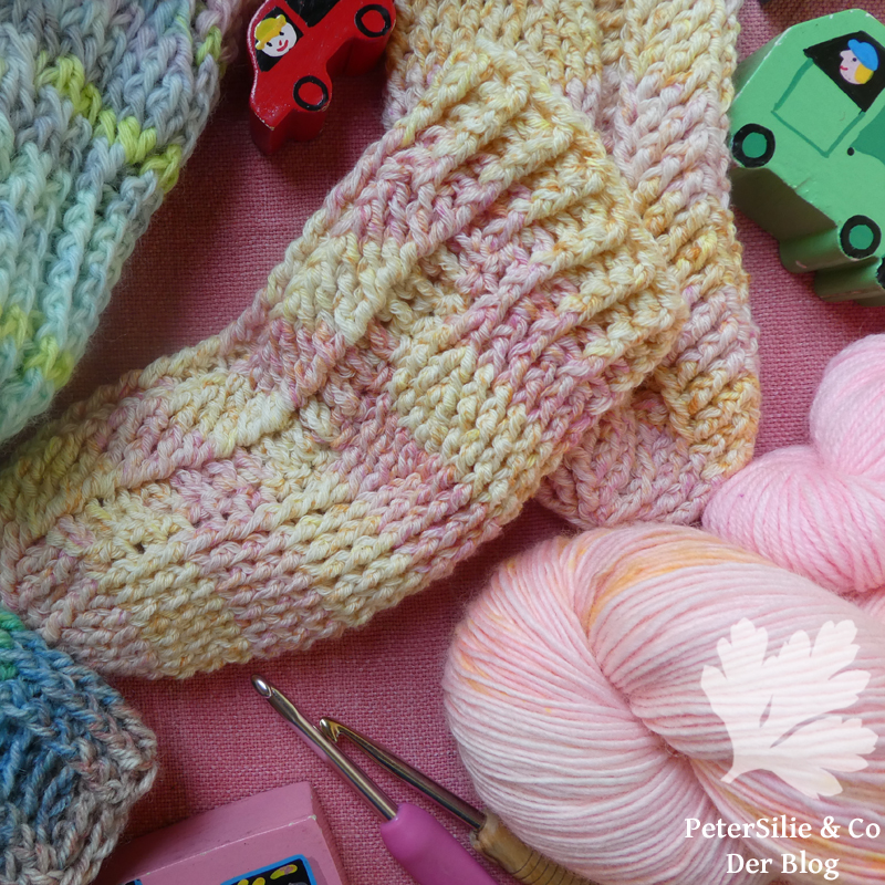 Fazit: Naja, ich bin jetzt wild am Sockenhäkeln. Wenn ich im Sockenfieber bleibe, wird wohl mein ganzes Umfeld sich daran erfreuen. Eventuell Weihnachtsgeschenke? (Wird es nicht, das habe ich geschrieben bevor ich mit meinem Erwachsenen- Sockenpaar angefangen habe)