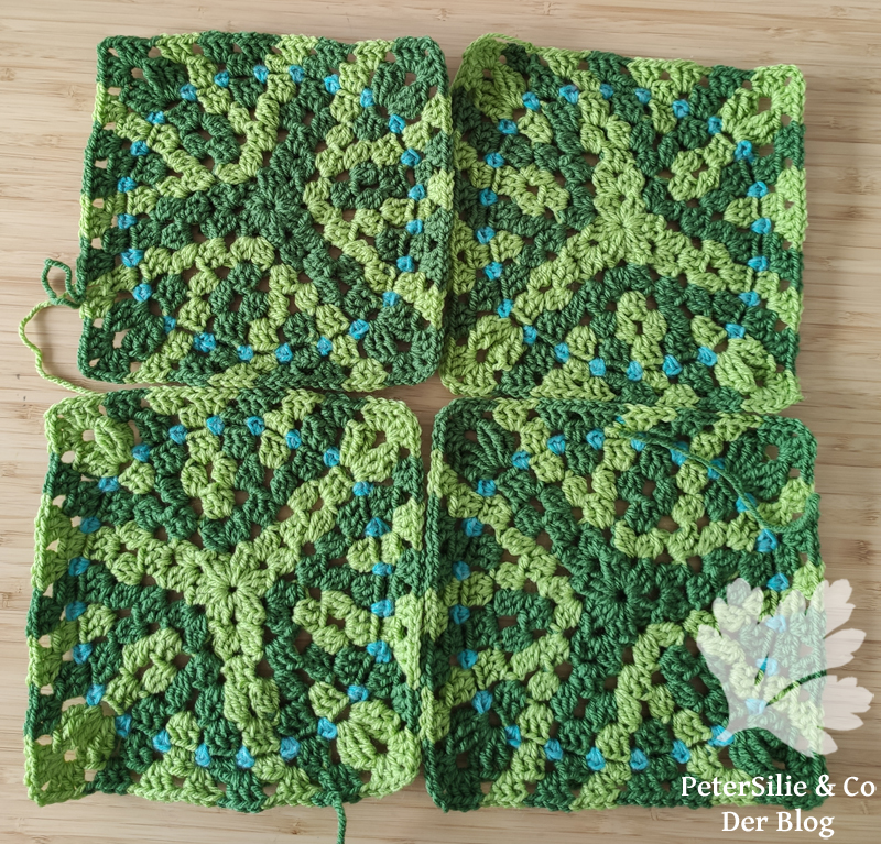 1. Ich hätte auch nicht gedacht dass es so viel Spass macht. Das klassische Granny Square mut den nur reihenweise ohne klimbim Farbwechsel habe ich nur bei der grünen Rückseite probiert und als zu langweilig abgehakt.