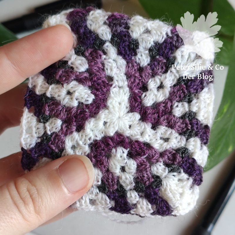 Direkt danach habe ich ein Granny Square in normaler Grösse gemacht, es war ein absolutes surreales Gefühl, fast ein Fiebertraum, mit der 3 mm Häkelnadel zu arbeiten. Alles fühlte sich so gross und klobig an, obwohl ich weiss, dass Sockenwolle sonst für mich als dünne Wolle zählt. Es war einfach nur sehr, sehr seltsam.