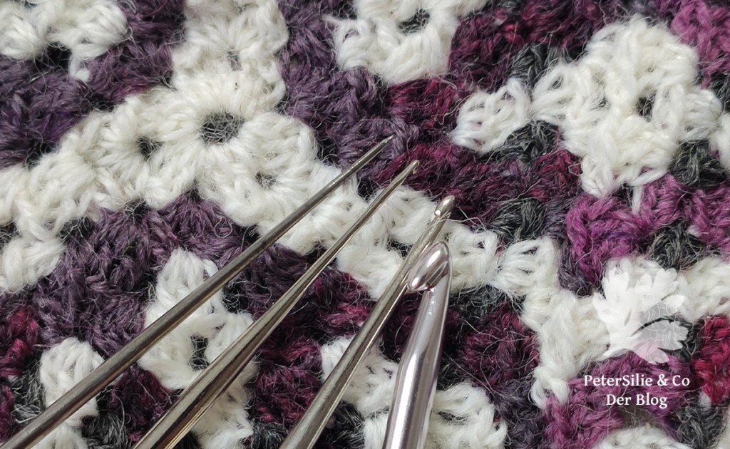 Deine Beispiele sind sehr hübsch und gut gelungen, das Grannymuster finde ich raffiniert. Schön, wie du die verschiedenen Garnqualitäten und Nadelstärken vorstellst. Und sogar noch eine Häkelnadel von der Urgroßmutter ist vorhanden!