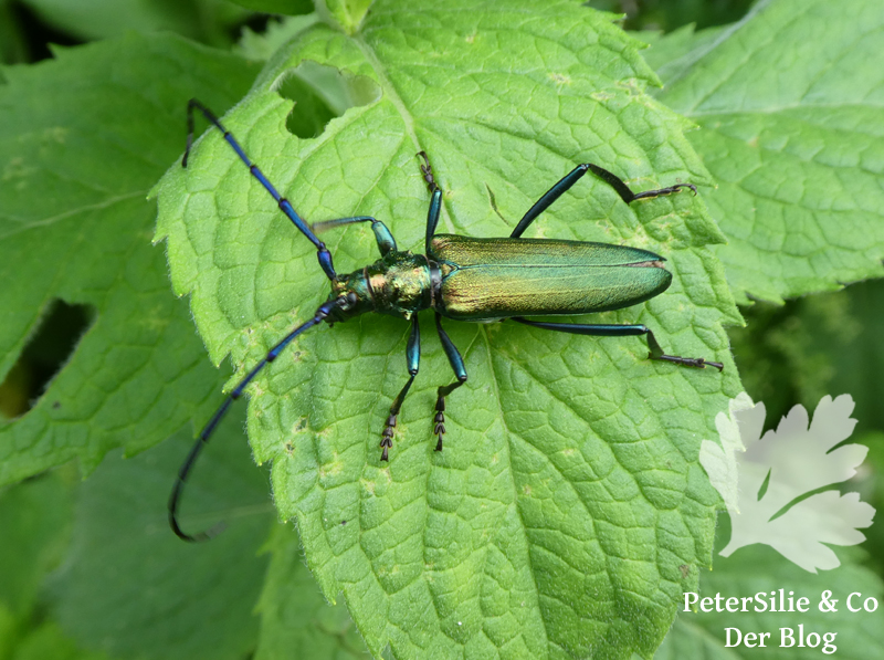 Käfer sind für mich schlichtweg schön, natürlich nicht immer und überall. Aber ich freue mich, wenn ich einen Rosenkäfer aus der Regentonne retten kann. Sitzt er dann im Trockenen und kommt wieder zu sich, ist das einfach wunderbar. Oder wenn ich ein verirrtes Exemplar aus unserem Keller befreien kann…Manchmal entdecke ich sie auch unter Astwerk oder Rindenstückchen, sehe sie geheimnisvolle Wege im Wald beschreiten oder gemütlich nahrhaften Pflanzen zustreben und blitzartig verschwinden (wenn sich die kritische Hand des Gärtners nähert, der seinen Lilien retten will).
