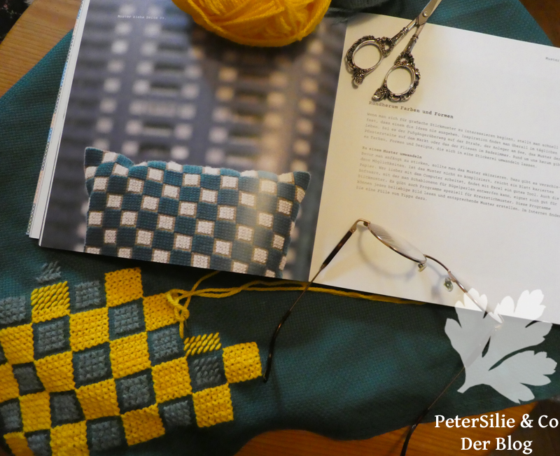 Maria Snare Johnsson beschenkt uns mit ihrem Buch Grafische Muster. Es ist ein ästhetisch extrem hochwertiges und ansprechendes Buch und offensichtlich ist das der Autorin bewusst: Anders Wieslander und Kicki Wieslander werden als Mitautoren auch auf der Titelseite angeführt. Eine sehr schöne Wertschätzung finde ich. Kicki Wieslander zeichnet sich für den Text der Originalausgabe verantwortlich, Anders Wieslander für die großartigen Fotografien, das Layout und die Illustrationen. Ich habe schon viele sehr gut fotografierte und gestaltete Bücher gesehen, aber seine Arbeit setzt nochmal was drauf. O.k., da spricht jetzt der Fotograf und Grafiker aus mir, aber es ist einfach großartig, wie Anders Wieslander die herrlichen Stickereien von Maria Snare Johnsson in Szene setzt. Womit wir beim Thema sind: Sticken, genaugenommen geht es um den Kreuzstich mit Wolle auf grobem Gewebe, Leinen oder Aida. Das tolle daran: die Arbeiten sind modern, wirken frisch und können sich in jeder coolen Wohnung sehen lassen. Und das mit Kreuzstich! Das muss man erst einmal schaffen. Überwiegend werden im Buch großflächig bestickte Kissen gezeigt in herrlichen Farbkombinationen und in grafischen Mustern. Dazu gibt es immer wieder Fotos, die eine bestimmte Stimmung aufgreifen, eine Farbkombination oder als Inspiration für ein Muster gedient haben könnten.