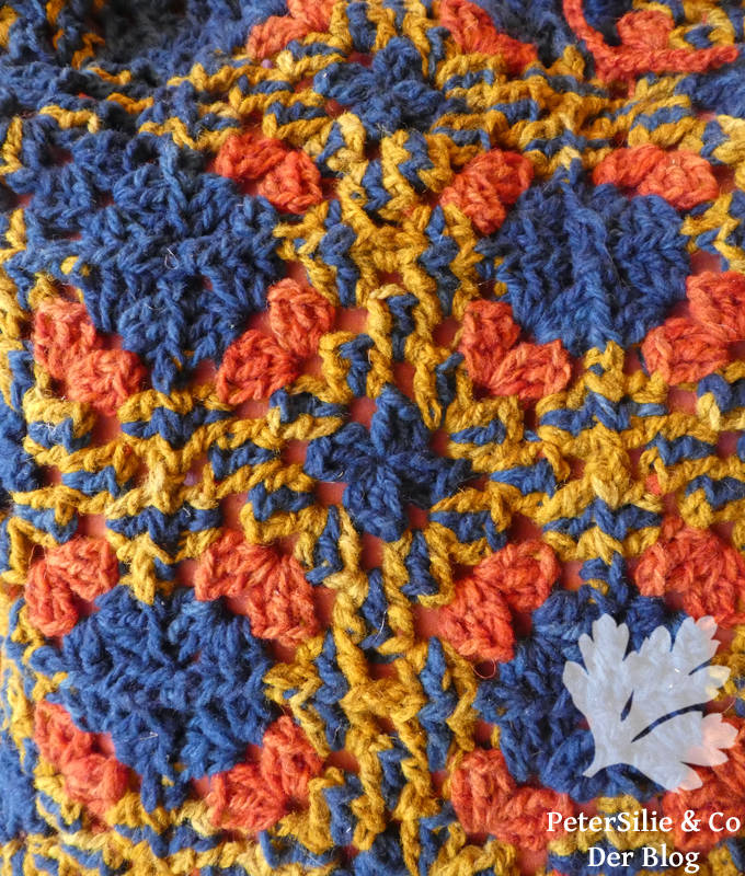 Aber noch eine grössere Herausforderung war die Rückseite, die Wolle war schon deutlich weniger geworden und egal wie ich drehte und wendete die Wolle würde nicht reichen. Im Stash habe ich dann passende Wolle herausgesucht, nur um dann festzustellen, dass die Wolle zwar so optisch passen würde, nur beim Verhäkeln sich als deutlich dicker herausstellte. Ein bisschen dünner lässt sich ignorieren, aber bei zu dicker Wolle wird’s dann schon das klassische bockige Gehäkel. Naja ein bisschen hin und her, aber ich hatte ja auch noch einen Strang der gleichen Qualität von der Färberin in Indigo. Ich war einfach nicht so wild darauf die drei Farben zu kombinieren, in Kombination verstrahlen die Farben einen starken Retro Style. Und nicht unbedingt den Flair, denn ich mag. Aber gleiches Garn passt halt am besten zusammen, also gibt es eine Retro Rückseite und am Ende blieb mir tatsächlich noch ein bisschen Wolle über vom rot und grün.