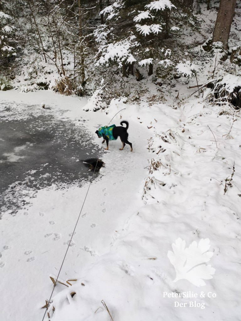 Twinni lässt sich das Mäntelchen ohne Problem anziehen, nur schnell sollte es gehen, sie will ja schliesslich raus in den Schnee und nicht mit dem Anziehen Zeit verschwenden.