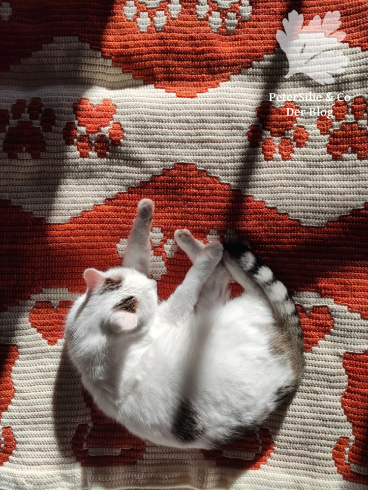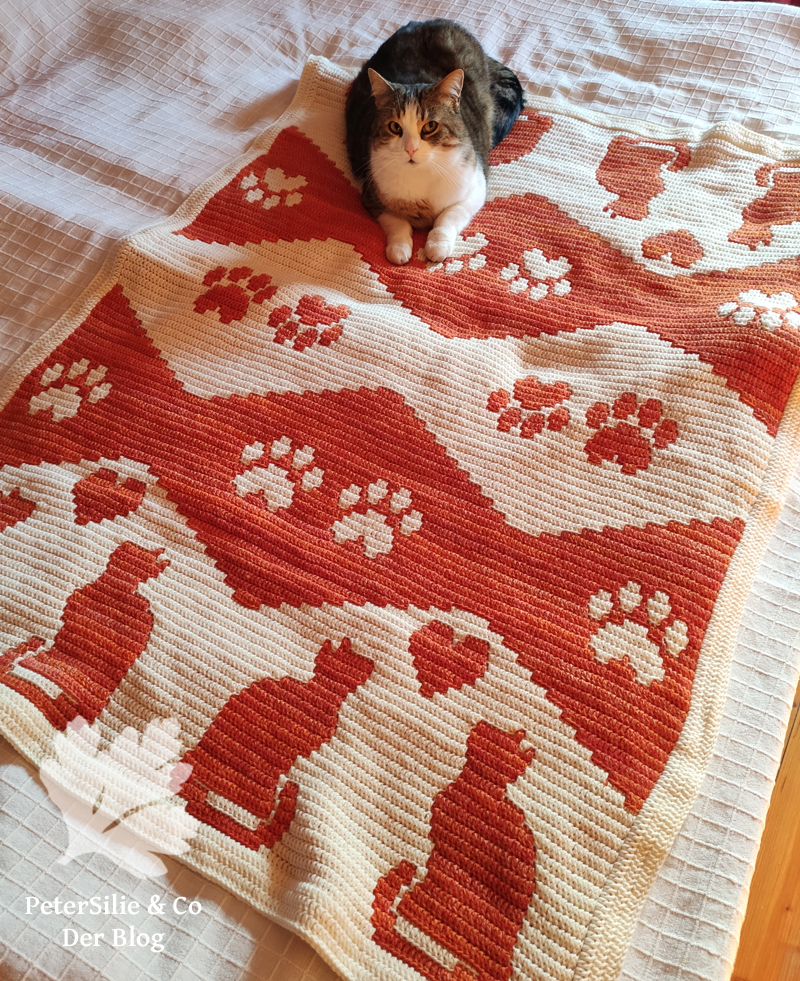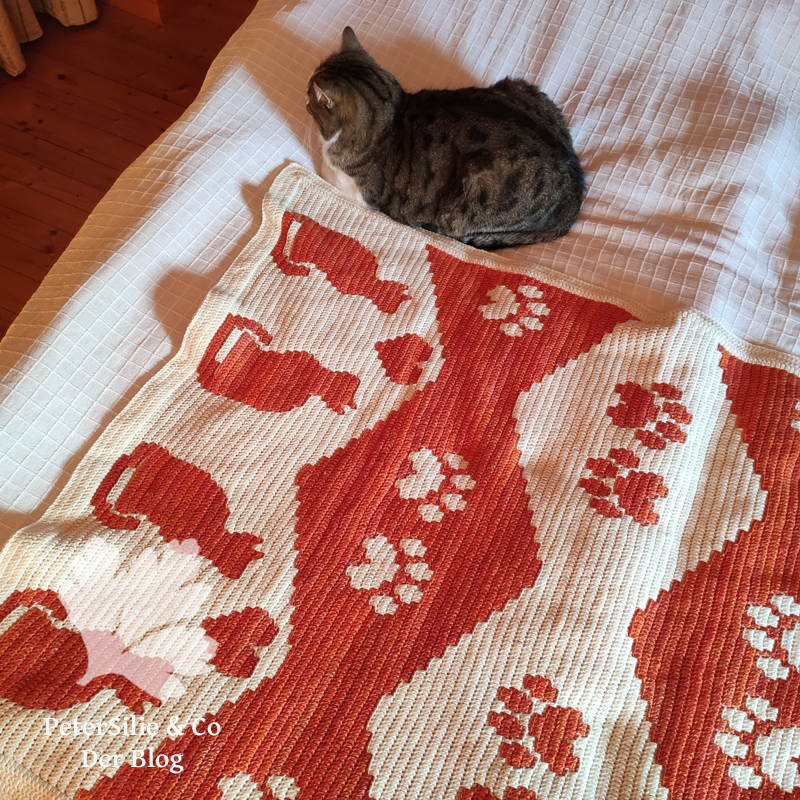 All meinen Vorsätzen zum Trotz, habe ich mich zum Jahresende kurz vor Weihnachten doch noch zu einem Testhäkeln hinreissen lassen. Katzen sind unwiderstehlich. Netterweise war die Packung Pullimenge oranger Wolle (Admiral 6-fach ombre Orangen-Confit) vom Besuch bei Schoppel perfekt für die Decke, also brauchte ich nur eine Farbe zum kombinieren, dass wurde nach vielem hin und her laufen am Wollregal cremeweiss. Sieht gut aus, funktioniert und vor allem wollte ich nicht eine zweite schwarz orange Decke machen. (Spinnendecke vom Sommer)