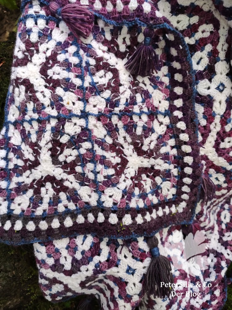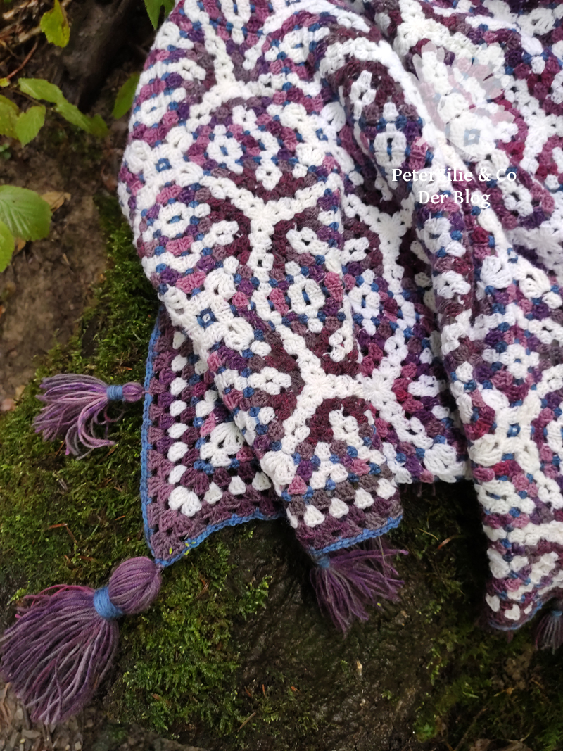 Danach ging es ans restliche Quasten montieren und somit war die Decke fertig. Ich bin zufrieden, klar wurde sie nicht so gross wie mal geplant, aber so ist sie perfekt um sie sich über die Knie zu legen. Mehr braucht es ja oft nicht.