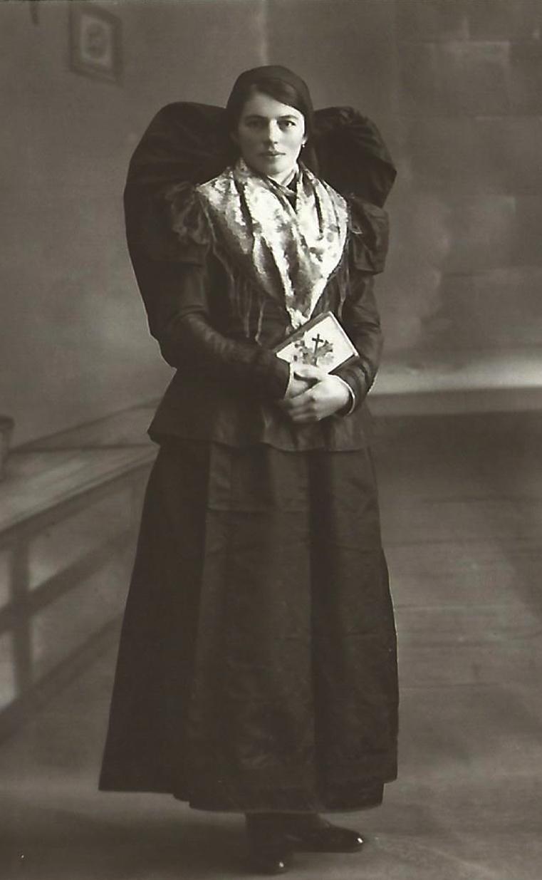 Mitte des 19. Jahrhunderts war Schwarz im Alltag allgegenwärtig, es ist der Beginn der zweiten industriellen Revolution. Bergbau, Kohle, Eisen- und Metallverarbeitung veränderten ganze Landstriche. Überall lagerte sich Ruß ab. In allen Industriestädten hinterließ Rauch auf Häusern, Dingen und Menschen dicke Schichten von fettigem Ruß, die man kaum abbekam. Deshalb bevorzugte die Herrengardeobe dunkle Farben, vor allem Schwarz. Einfache Arbeiter trugen Blauzeug oder Grau. Unter Büroangestellten und Geschäftsmännern wurde Schwarz zu einer Art Uniform. Besonders in der Herrengarderobe sind da immer noch die Nachwirkungen, das lange eingeübten Denken und Geschmacksempfinden der Reformation spürbar. Schwarz wirkte seriös und zurückhaltend, vermittelte Autorität. Es kleidete all jene, die Macht und Wissen haben: Richter, Staatsanwälte, Rechtsanwälte und Notare, Ärzte, Professoren und Beamte. Darüber hinaus trugen Polizisten, Feuerwehrmänner, Zöllner, Postbeamte, Seeleute in ganz Europa Schwarz. Ich habe unten eine Bildergalerie von alten Fotografien. Bei der Durchsicht der Fotos sagte meine Nachbarin spontan: „Eine schwarze Gesellschaft…“