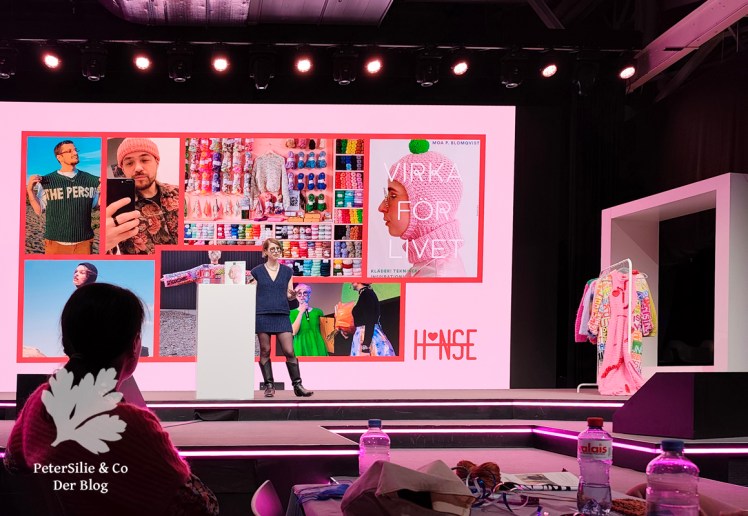 Aber zurück zum Vortrag von Honsedesign, dieser war toll und es wurde deutlich, dass sie nicht zum ersten Mal auf einer Bühne steht. Später habe ich von ihr erfahren, es war das erste Mal, dass sie den Vortrag auf Englisch gehalten hat und vorab doch nervös war. Im Laufe des Tages gab es auf der Bühne noch andere Vorträge, sowie eine Krimilesung und zum Abschluss des Tages eine Runde mit diversen Strick-Influencerinnen und YouTuberinnen (kannte ich als Nicht-Strickerin alle nicht).