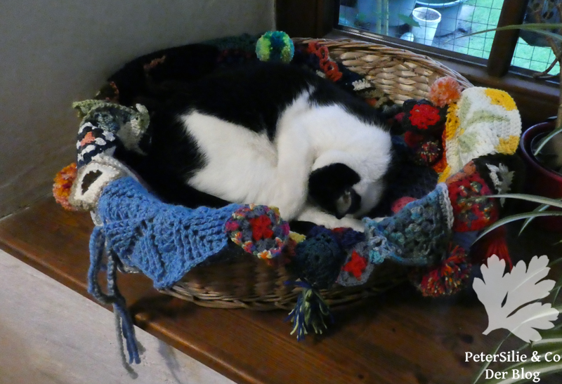 Die erste (und zugegeben einfachste) Idee war eine Katzendecke. Immerhin mögen die Katzen (fast) jede Decke und diese Decke wurde ein richtiges Crazy Catbed werden, samt Spielzeug…