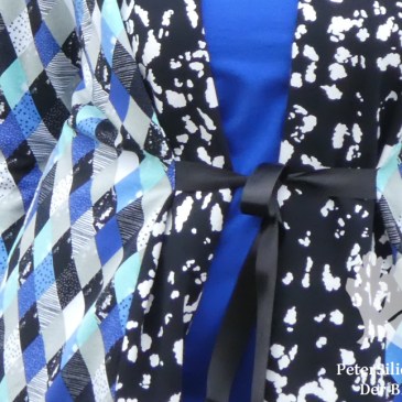 Die Jacke Dora von So!Pattern habe ich bereits mehrfach genäht: Das Testmodell aus einem wunderschönen grünen Strickstoff (aus dem Schrank meiner Mutter), eine Farbe die mir überhaupt nicht steht, dann eine graugemusterte Version und eine aus goldschwarzem Glitzerstoff. Nachdem ich festgestellt hatte, dass mein Kleiderschrank sehr dunkel und graudominiert war- und ich Grau eigentlich nicht … Mehr Kalte Farben-Jacke und Shirt