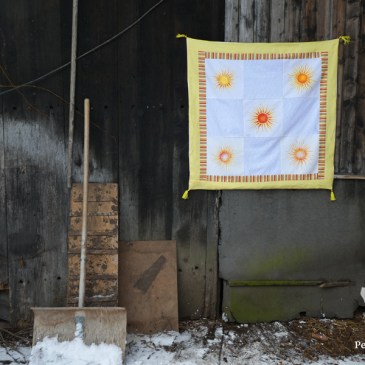 Ein Frühlingsversprechen, nicht wahr? Diese Sonnen entstanden zur gleichen Zeit wie unsere Geckos, von denen ich hier erzählte. Es ist zweifarbige Schablonenmalerei in Rot und Gelb. Einige Sonnen sind heller andere dunkler, die Farbstärkste habe ich als Mittelpunkt gewählt. Patchwork dient mir ausschließlich zur Resteverwertung. Arbeiten mit winzigkleinen Teilen oder komplizierten Mustern bewundere ich zwar, … Mehr Sonnen – Eine Patchworkdecke mit Schablonenmalerei